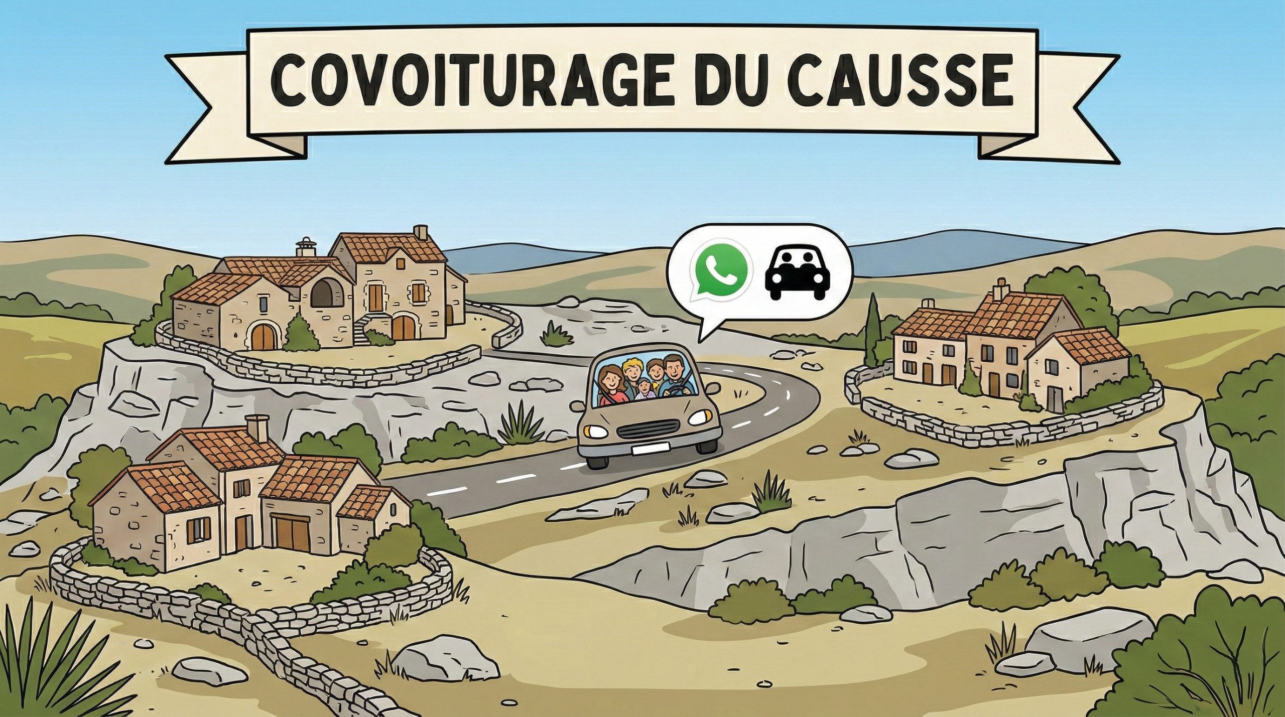 Une de nos voisines lance un groupe Whatsapp « Causs’voiturage » pour covoiturer entre caussenards: nous sommes souvent seuls dans nos automobiles pour descendre au Vigan ou